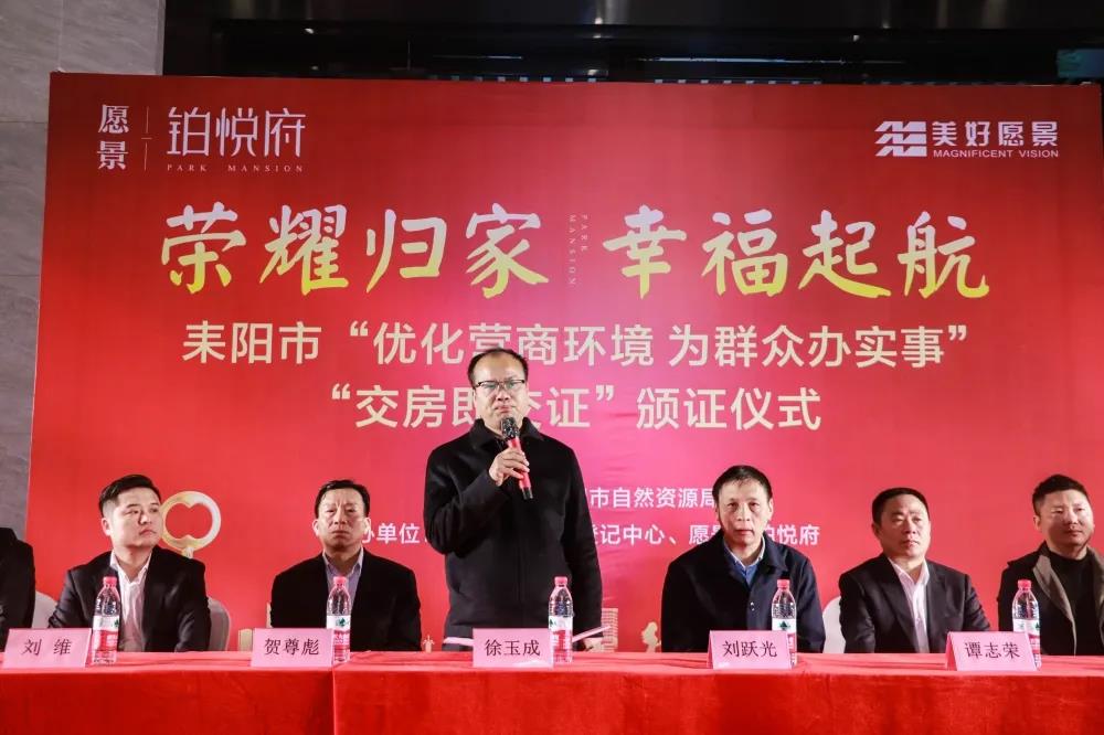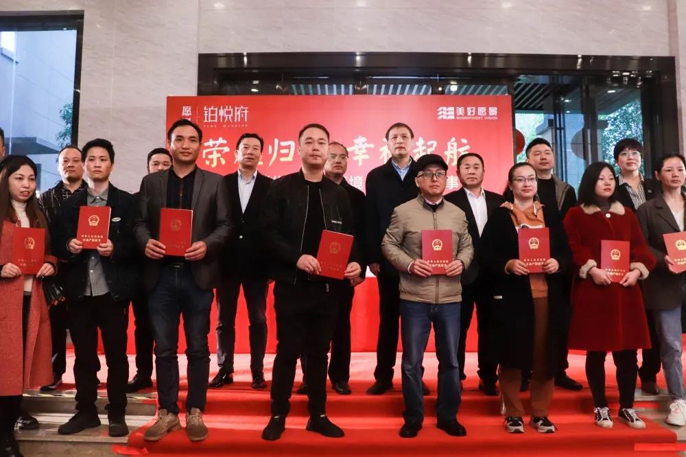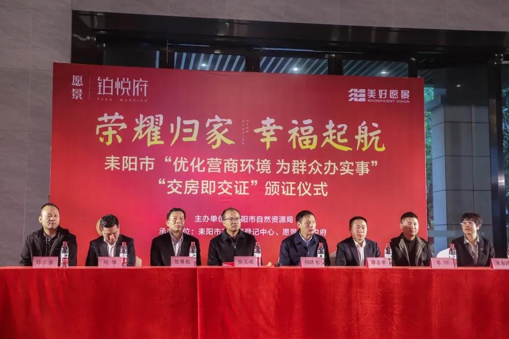 榮耀歸家,幸福啟航!11月3日,耒陽市“優(yōu)化營商環(huán)境,為群眾辦實事”“交房即交證”首發(fā)頒證儀式在愿景·鉑悅府營銷中心隆重舉行。